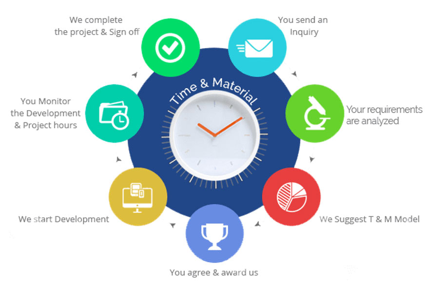 - T & M Model allows more control over the development progress & cost, instead of taking an educated guess at eventual expenses and high probability of additional overpriced changes.
