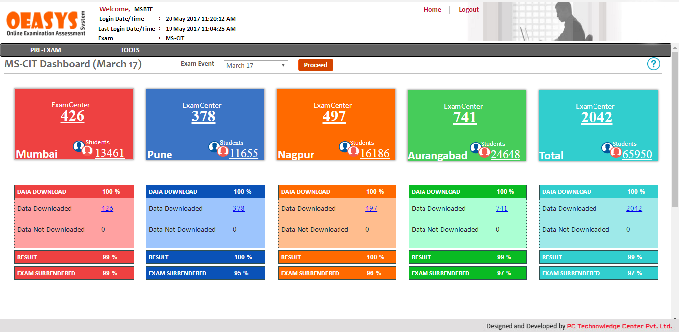 We have developed and run Online Exam and Assessment System (OEASYS) which tests the skills of the learners. This multi-lingual (English, Marathi, Hindi and Urdu) software was first developed in August 2001 for the Government of Maharashtra, on which, by now, around 9.5 million learners have been tested. This Online Examination is conducted in the nooks and corners of Maharashtra under the brand name “MS-CIT” and in Rajasthan State under the brand name “RS-CIT” (1.5 million learners). This is the most popular and widely used application from our portfolio. Under this application learners appear for Computer Proficiency test which is a combination of Objective and Skill-based questions. At the end of the examination, candidate gets his result as well as certificate “On-the-Spot”. Syllabus covered under this examination is MS Office and Open Office. Similar examination can be conducted for different e-learning applications for Government and Corporate clients.